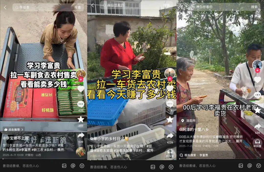 如此直白的模仿,虽然也引来了一些非议,但大多数人在评论区表示支持,认为“这也算是善意的扩散,这些人虽然在模仿,也的确是帮到了村里人”,不可否认这种支持无形中也助推了“李福贵们”的批量涌现。