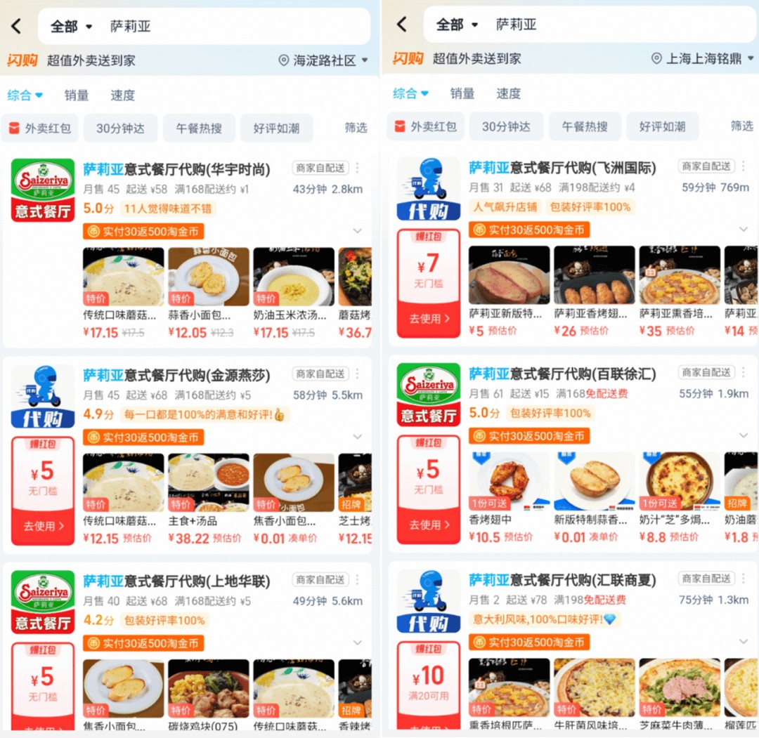 不过,这种妥协并未在全国同步。萨莉亚在北京、上海的门店仍坚持只做堂食,只允许第三方代购,且起送门槛比普通外卖要高,免配送费则至少消费168元或198元。