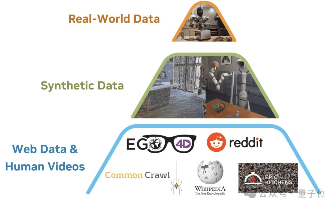 其中仿真合成数据和人类视频数据属于“本体无关数据”,更容易标准化和大规模生成。