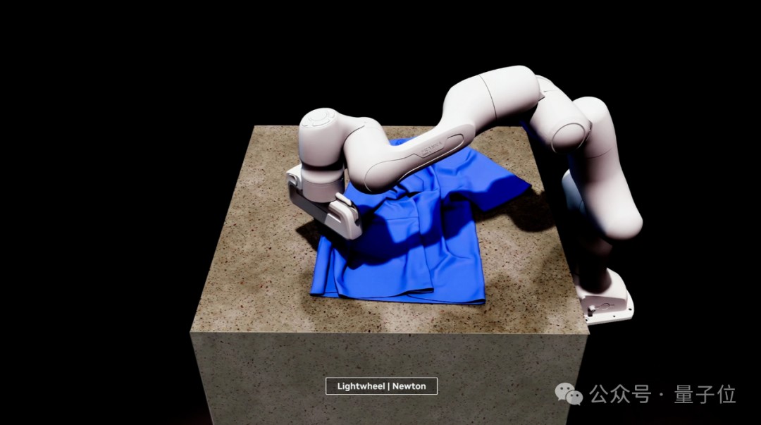 本月初,在英伟达GTC DC大会的主旨演讲中,黄仁勋展示了光轮与Isaac Sim、Newton的协同仿真成果,现场播放了机械臂在不同仿真平台上完成布料折叠任务的效果对比。尽管底层求解器不同,仿真行为却高度一致。