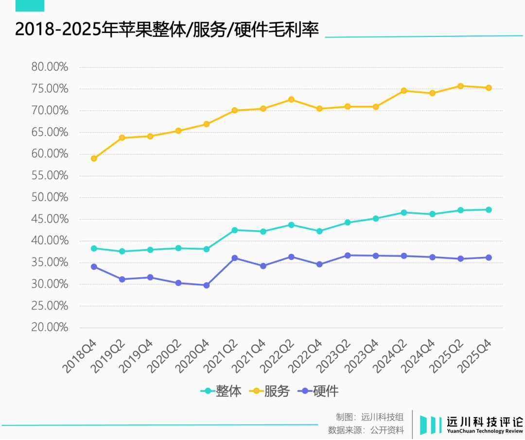 这也从侧面反映了苹果当下的经营状态——硬件乏力,软件救场。