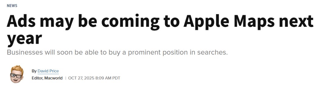 苹果地图里也能看广告了