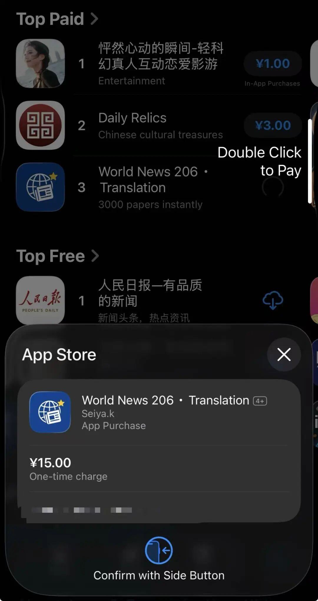 App内购买应用内服务时的支付界面
