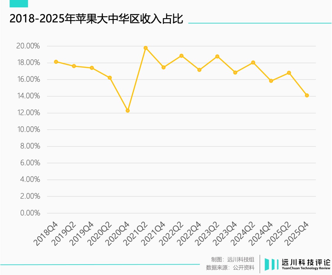 但2019年前后,全球手机市场增速下滑明显,苹果硬件收入整体承压,在竞争积累的大中华区市场非常明显。