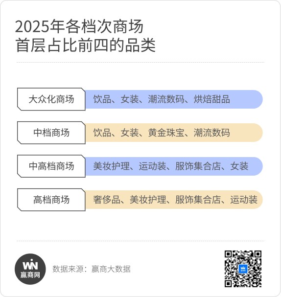 业态组合上,饮品、女装、潮流数码、黄金珠宝占比位居前列,成为新“四大金刚”。