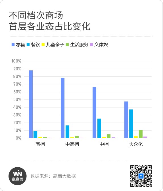 分业态看,餐饮、文体娱是首层近三年唯一持续扩张的业态。