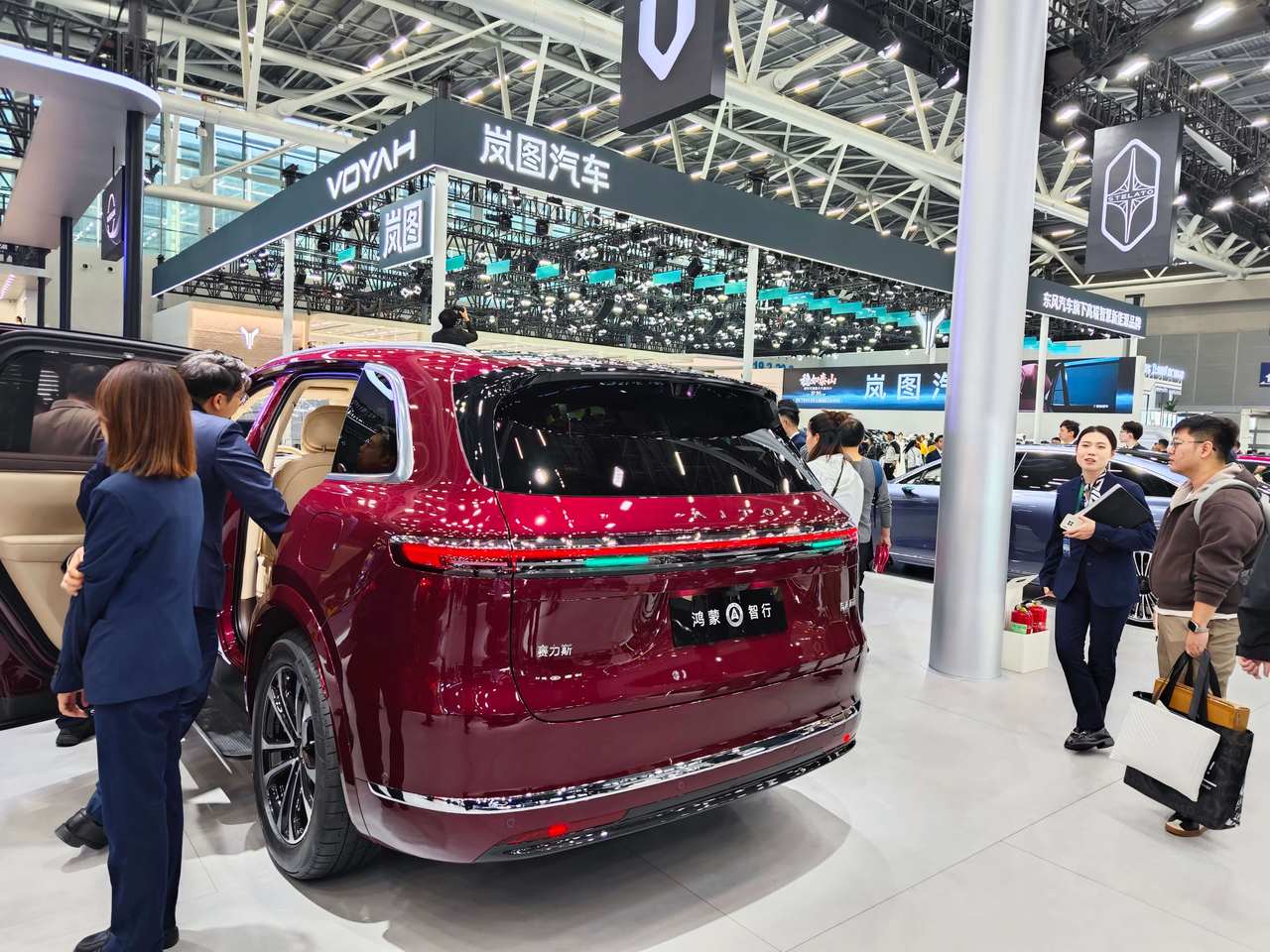 针对热度同样很高的鸿蒙智行,电车通留意到观众对问界 M8、问界 M9、智界 R7 三款 SUV 的关注度都不低,不过鸿蒙智行在这届车展上除了设置总展台之外,还设置了尚界、尊界等独立展台。