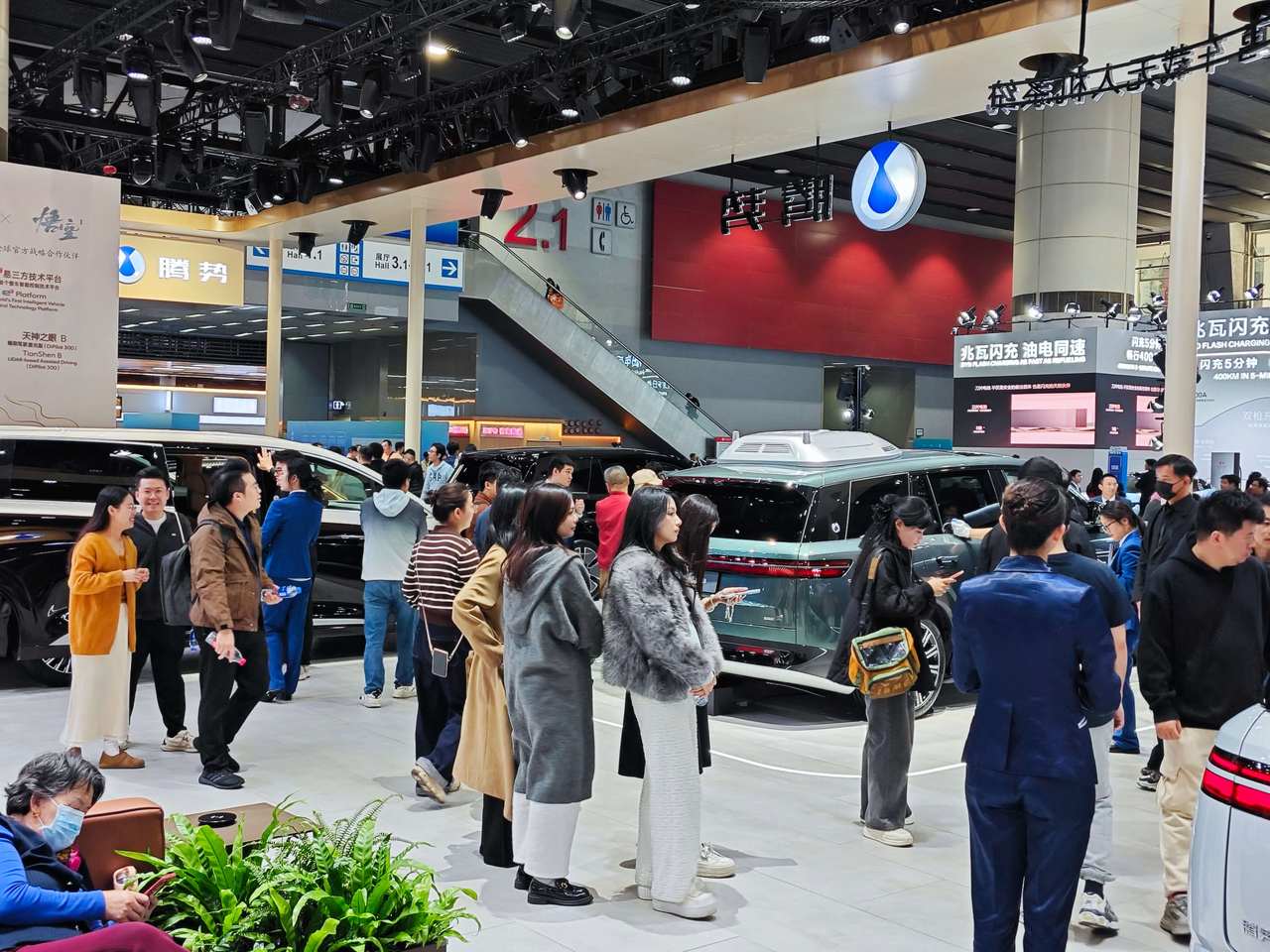 当电车通选择在专业观众日进场后,才发现什么才是人气——原本媒体日里略显空旷的车企展台前,此刻更是挤满了观众,主流新能源品牌展区更是被围得水泄不通。