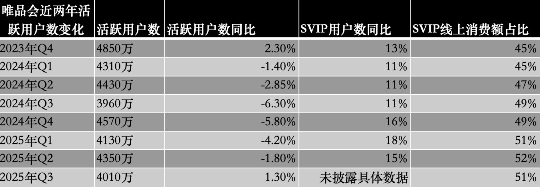 而2025年第三季度,唯品会活跃用户数为4010万,虽然实现了同比增长1.3%,为近两年首次增长,但这一增长的“含金量”需要冷静看待。
