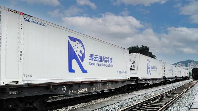 瑞云冷链2024年正式启动国际化战略,目前瑞云国际冷链投入自备冷藏集装箱,在昆明、南宁、深圳、万象、曼谷等地设有冷链中转仓,开通中国往返老挝、越南、泰国、柬埔寨、新加坡、马来西亚六国跨境冷链运输服务,开通泰国境内冷链仓配服务,中国香港境内冷链仓配服务。通过整合资源,瑞云国际公海铁多式联运高效运转,可为全球客户提供从订单处理、通关、仓配一体的全链路冷链物流服务。