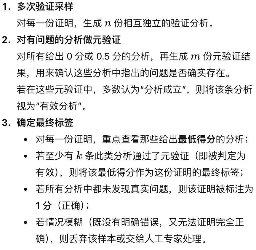 尤其是那些「验证器第一次尝试没能抓出问题」的证明样本,对进一步训练验证器来说价值极高。