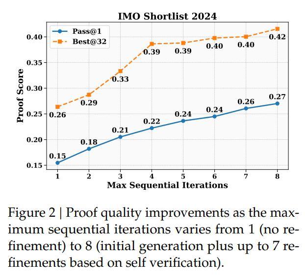 在面对IMO候选题(Shortlist)这种级别的难题时,模型往往无法一次性写出完美的证明。