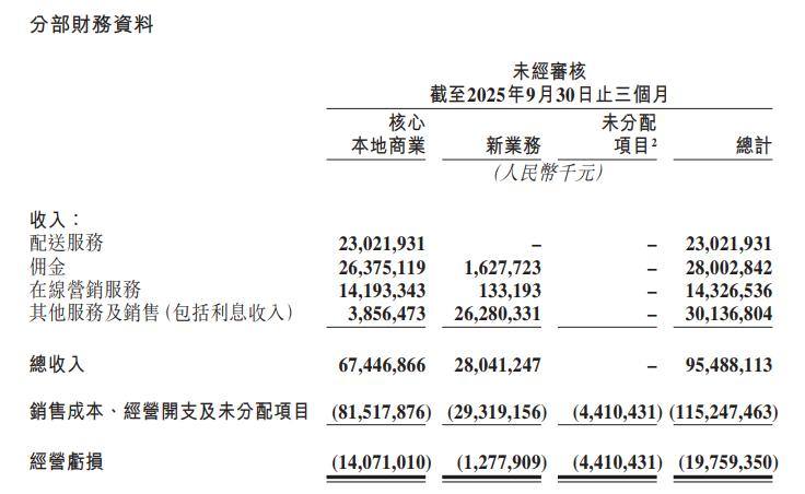 财报显示,Q3美团核心本地商业经营利润转负,亏损141亿元。而去年同期则盈利146亿元。