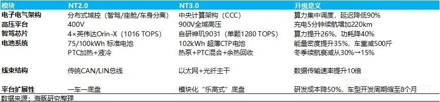 ① 在 BOM 成本端:蔚来通过自研 NX9031 智驾芯片(替代 4 颗英伟达 Orin-X),同时在 NT3.0 平台车型的设计上,蔚来用更低的成本聚焦于用户感知度最强的领域(大尺寸 + 提高舒适性配置),去除了 NT2.0 的盲目堆料,减少了冗余的设计(如降低铝含量,轻量化等)。