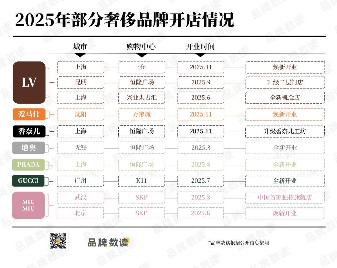 然而,奢侈品牌并非只有回归一线城市顶级商圈一种选择。根据品牌数读统计的2025年奢侈品牌开店情况,例如迪奥就在无锡恒隆广场开出正式精品店,也是其在长三角地区布局的第五座城市,另外四座城市分别是上海、南京、杭州、宁波。