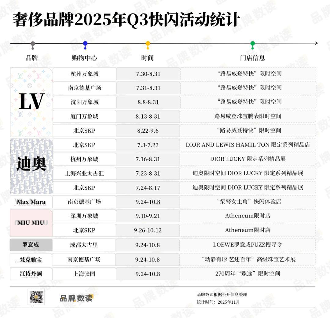 相比高投入开设大店,一些品牌选择用快闪形式多地谨慎试水。品牌数读统计,仅今年第三季度就有LV、Miu Miu在内的多个品牌在具有消费潜力城市的高档商圈开设精品快闪店,让当地消费者感受品牌文化。
