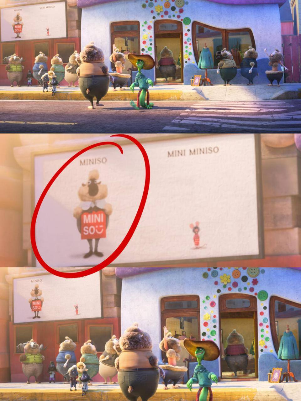 而今年强势发力IP的名创优品,则在IP合作模式上实现突破,成为首个植入《疯狂动物城2》的中国品牌。在动物城的一块专属广告牌,出现了「MINISO」和「MINI MINISO」的身影。
