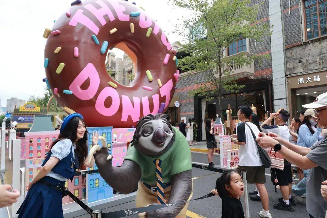 此外,今年《疯狂动物城》IP也积极与街区这一日常化的场景联动,比如八月两个周末,静安区茂名北路限时步行街化身为充满故事感的「动物城」;从8月到10月,在徐汇滨江落地的 Zooti-Walk 主题活动,不仅呈现了中央火车站、粉色爪爪冰棍、兔窝镇等电影场景和元素,「动物城漫步」体验也吸引了更多普通市民的关注。