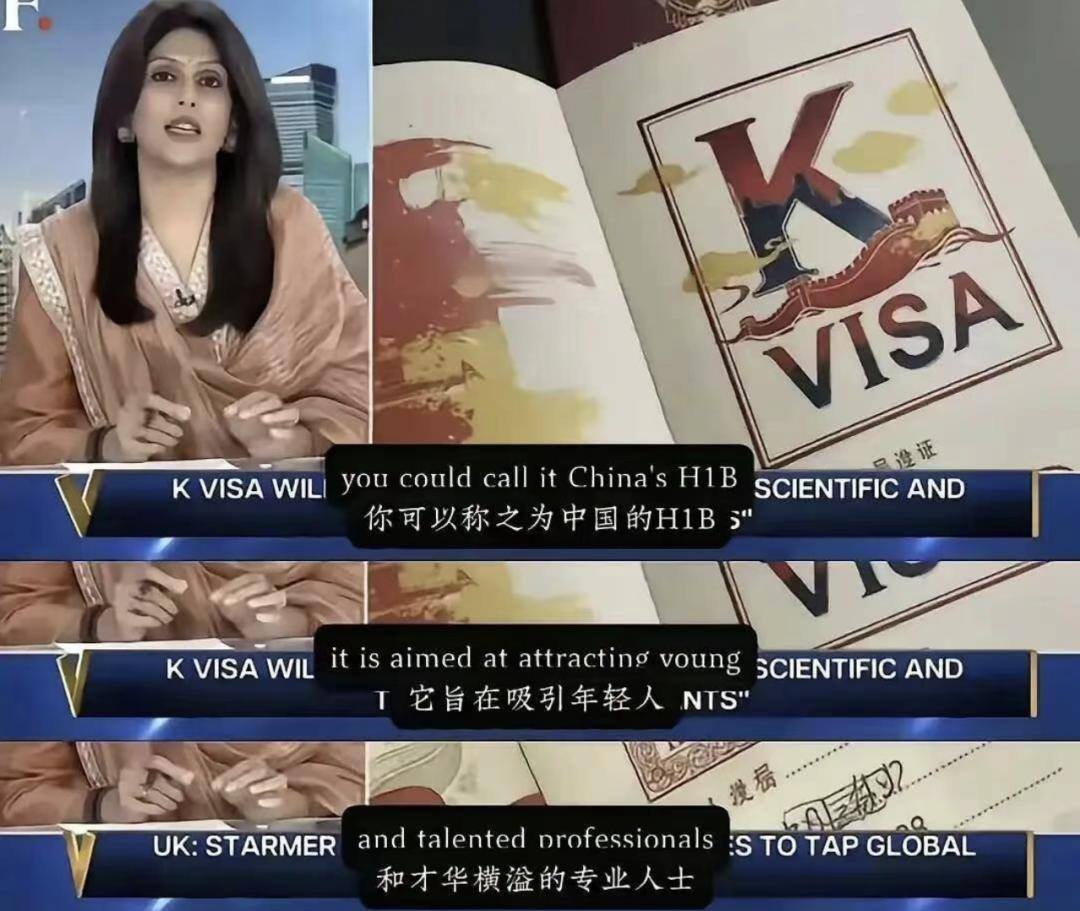 NDTV电视报道直接打出大标题:“特朗普搞乱H-1B,中国用K签敞开大门”。