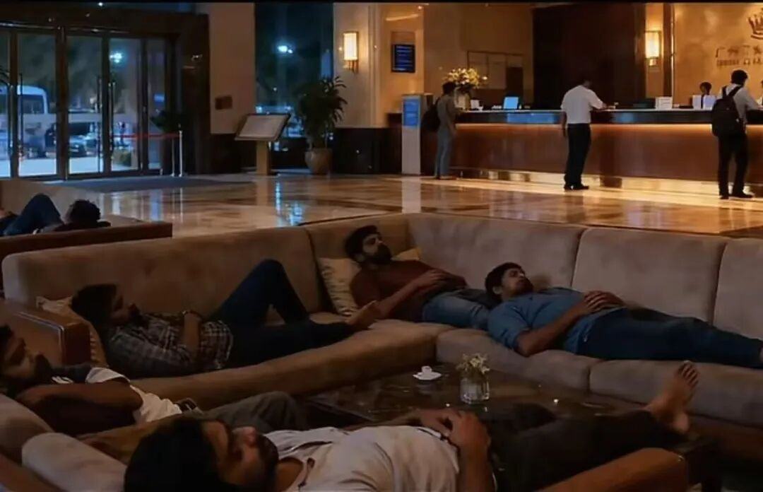 有广东网友发现,一些印度游客一下飞机就直奔酒店大堂,横七竖八躺沙发上睡大觉,甚至把脚伸到桌子上。