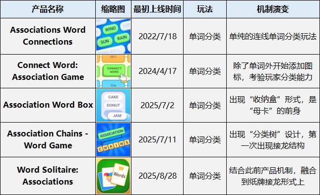 「Association Word Box」(上图)和「Association Chains」(下图) 已经开始出现母卡和接龙等机制 |图片来源:App Store