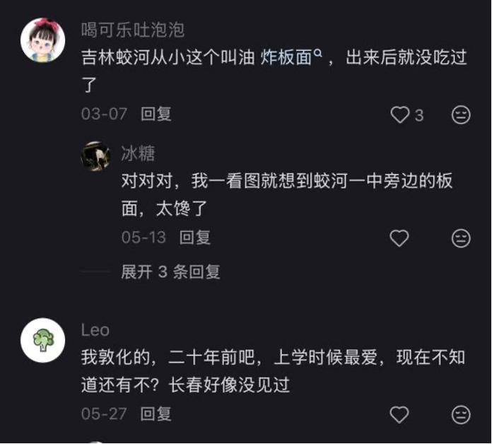 与此同时,记忆里的最佳版本烤冷面,则逐渐退出餐饮消费的历史舞台,缩成一个被怀念的对象。在寻找资料时,我发现每一种做法的烤冷面帖子下面都有很多网友自报老家IP,没有甜咸之争、没有攻击和辩论,只有好吃和怀念的共识。阅读评论可以得知,这种特色小吃曾流行于蛟河、敦化、牡丹江、延吉、齐齐哈尔、五常甚至远至宁夏银川......