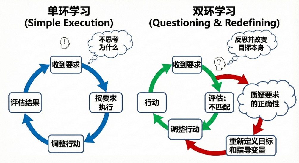 心理学家阿吉里斯双环学习模式,图源:GeminiAI生成