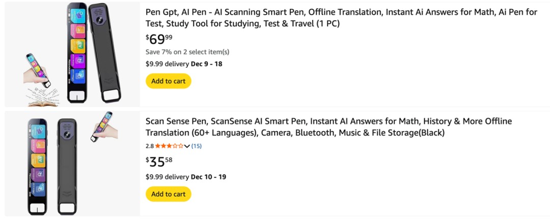 亚马逊在售的 AI 答疑笔|图源:亚马逊
