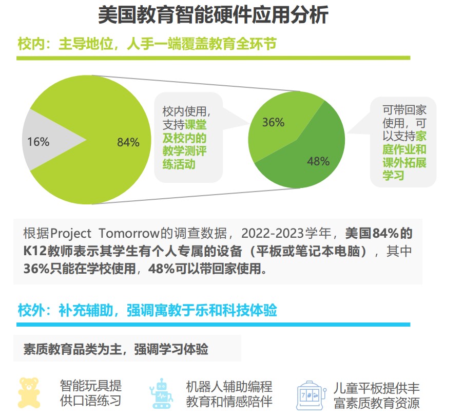 美国普及的教育硬件仍以平板、笔记本电脑为主|图源:艾瑞咨询《2024年教育智能硬件市场与用户洞察报告》
