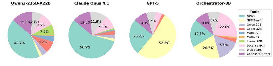 Orchestrator调用不同工具的比例对比