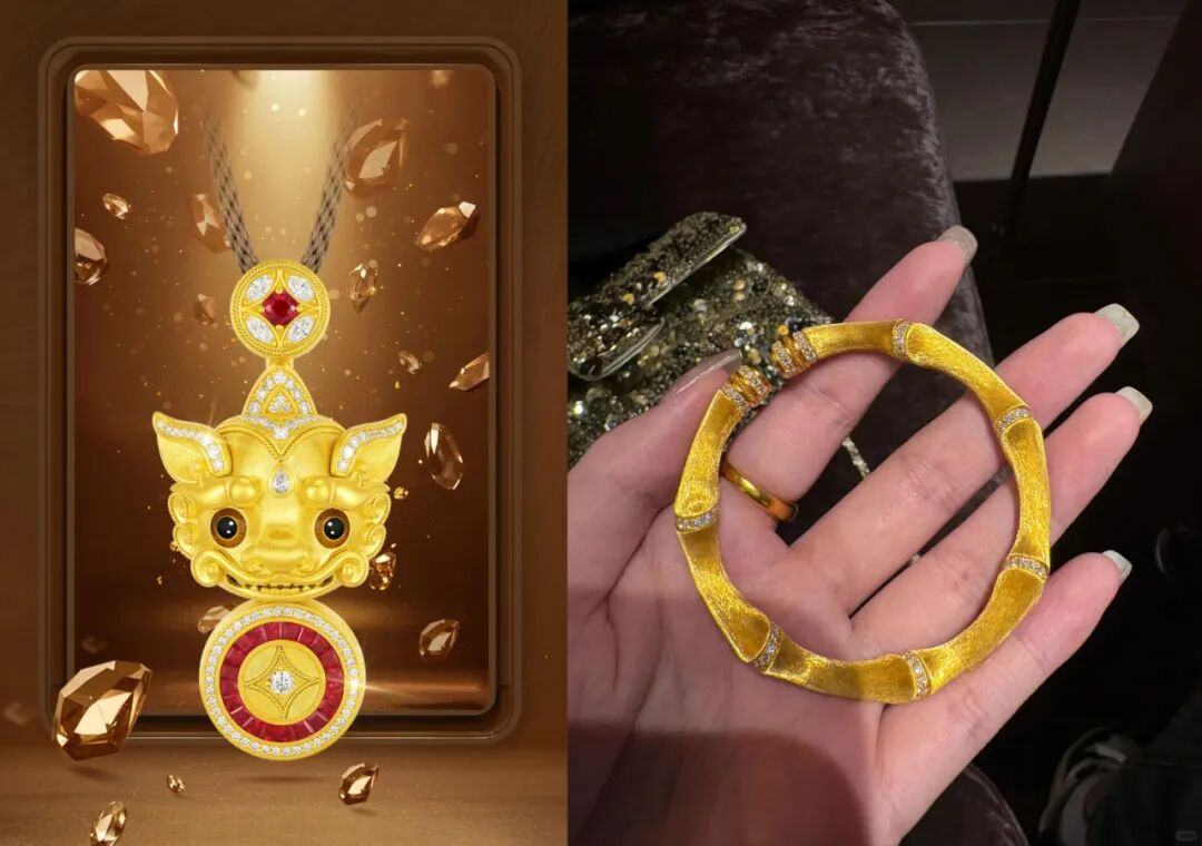 新走红的古法黄金品牌,已经迅速走上老铺黄金品牌爆火之路:涨价、排队、限购,甚至有的品牌已经开始配货。