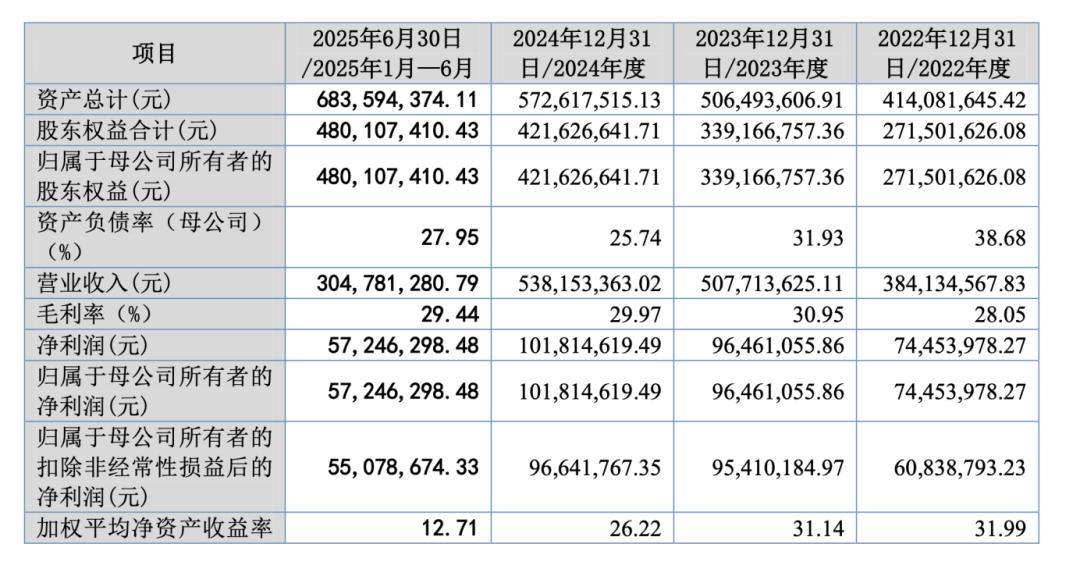 从1992年仅有凸版印刷机的地方小作坊起步,到成为农夫山泉、联合利华、宝洁、蓝月亮、海天味业、新天力等顶级品牌的核心服务商,江天科技用33年时间,在不起眼的赛道里成功突围。据招股书显示,2022年至2024年,江天科技营收分别为3.84亿元、5.08亿元、5.38亿元,同期净利润为7445.40万元、9646.11万元、1.02亿元,其毛利率始终稳定在28%以上,2023年毛利率更是达到30.95%。