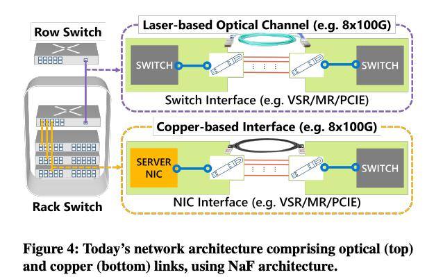 微软的论文里就提到,如果全用光纤互联,那么英伟达的 GB200 NVL72 机柜,功耗会原地暴涨 17%;超大规模的 GPU 集群,会每 6-12 小时就发生一次链路故障。。。