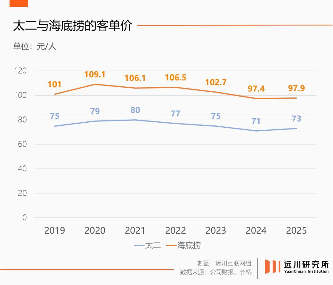 但从结果来看,大部分餐厅的客单价并没有如愿提高,反而在下滑。四年来,太二的客单价不升反降,从79元跌到了70元。绿茶每年推出150-200个新菜,但客单价依然停留在65–70 元之间。