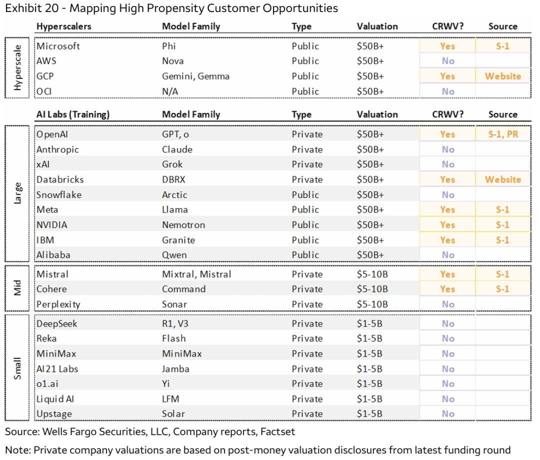 a. 客户结构目前高度集中于少数大公司和少数行业,一旦丢失某大客户会有严重影响(其最大客户之一微软就明确表示过长期来看更愿意自建数据中心,而非像CoreWeave等外部供应商租赁);