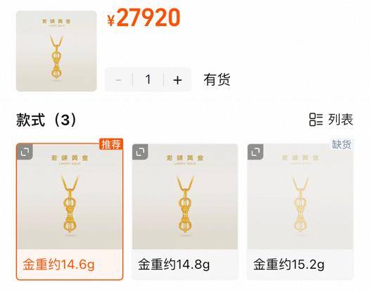 在最近一次提价之后,老铺黄金产品中,一件重达14.6g的足金项链,售价已然达到27920元,每克平均克价已经接近2000元。