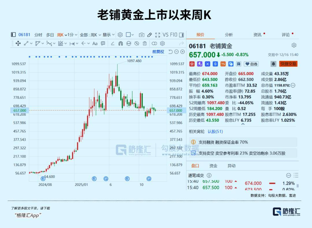 对于投资者而言,未来老铺黄金的走势已经脱离了金价上涨的故事,更事关其本身的溢价能力能否持续。