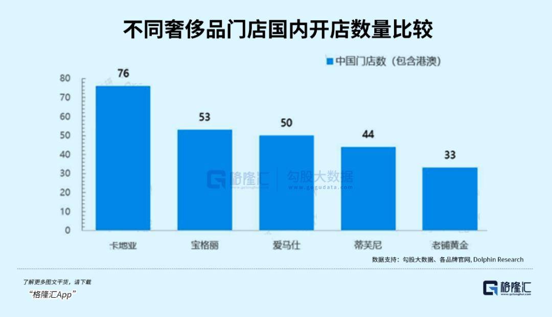 由于其门店只能开设在数量有限的顶奢商场,根据估算,包含港澳在内,老铺在国内的潜在开店上限约为67家,和卡地亚、宝格丽、爱马仕等国际奢侈品在国内的开店数量相近,约为当前门店数的两倍。