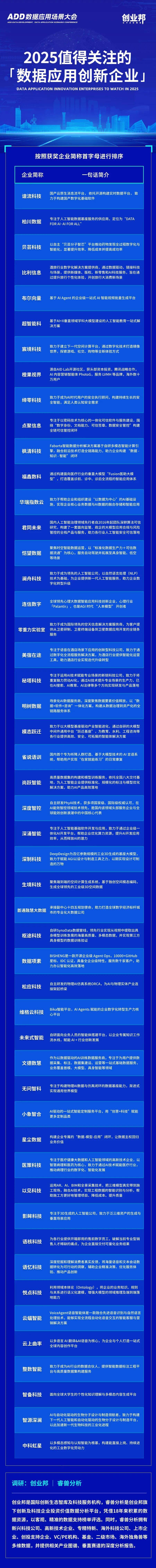 2025值得关注的数据应用创新企业获奖名单如下