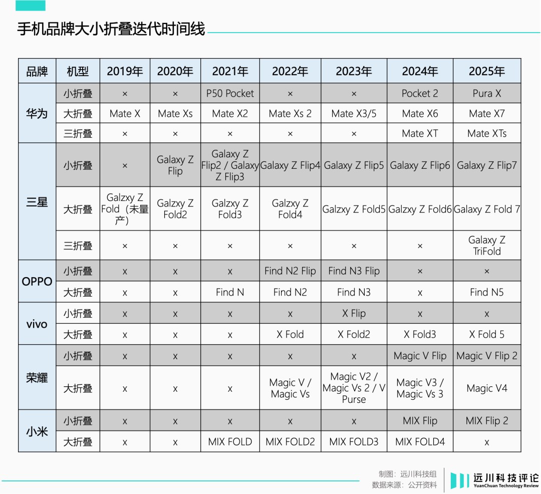 报告发出后,OPPO矢口否认,vivo已读不回,但事实是两家的小折叠再未更新,大折叠反而保持着上新节奏。从目前来看,除了家大业大的三星,各家厂商对小折叠的态度可以分成三类: