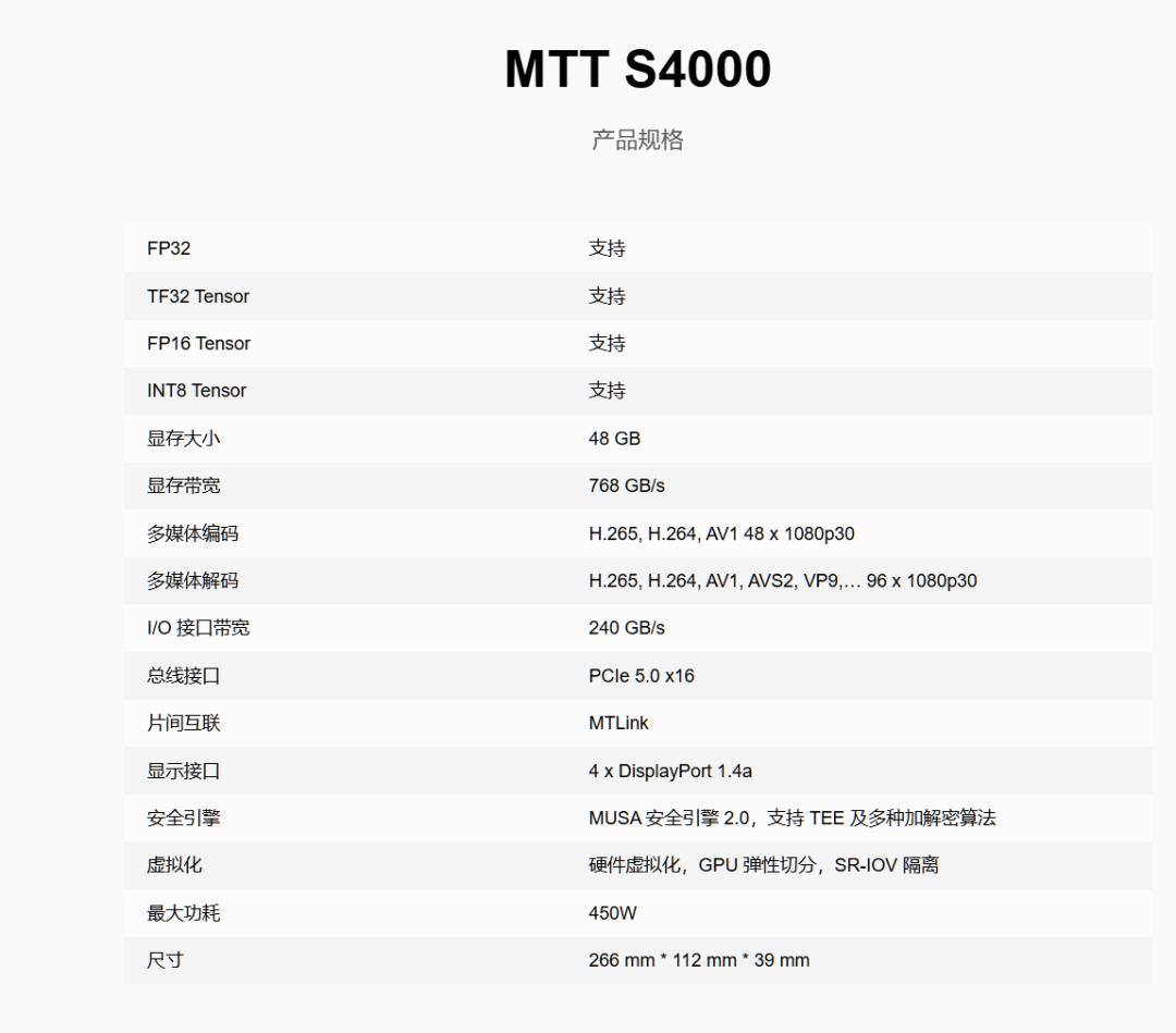 算力卡这边,摩尔线程旗舰S5000的参数表现还不错,由于算力卡更重视性能指标,算是英伟达H100的替代。摩尔线程在带宽、显存、算力表现都不错,支持主流计算精度,这代表着已经可以应用于AI大模型推训了。