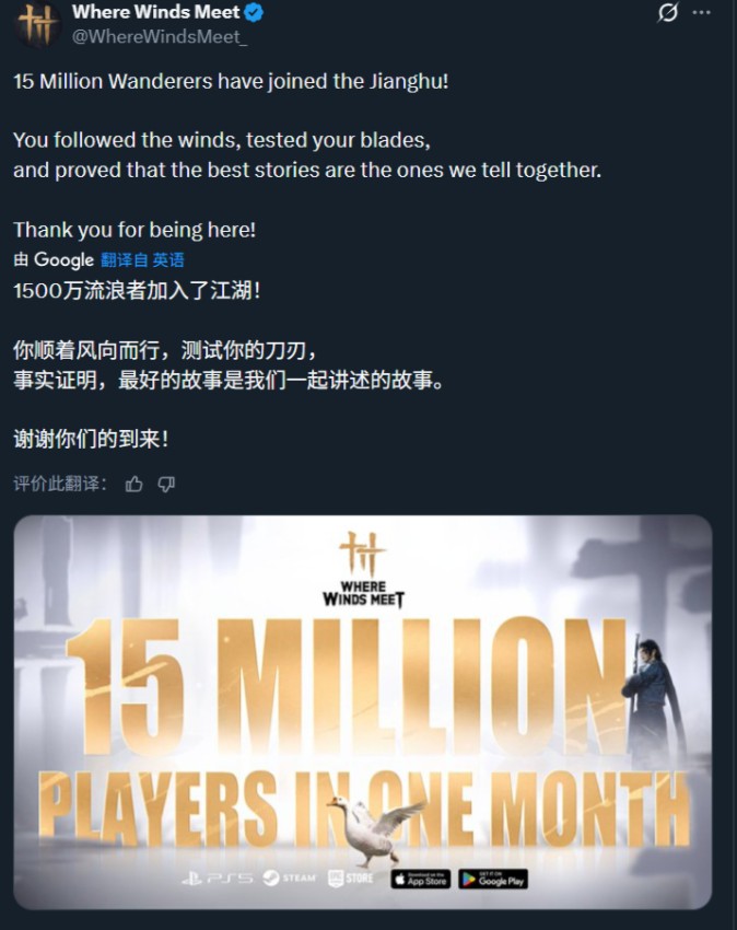 然而,大家还是低估了老外对于武侠的热情,《燕云十六声》40分钟内玩家数量超过50万,24小时小时内玩家数量破200万,两周破900万,Steam同时在线峰值破19万,横扫20个国家地区的畅销榜前十,网易喜不自胜又发战报又发奖励。
