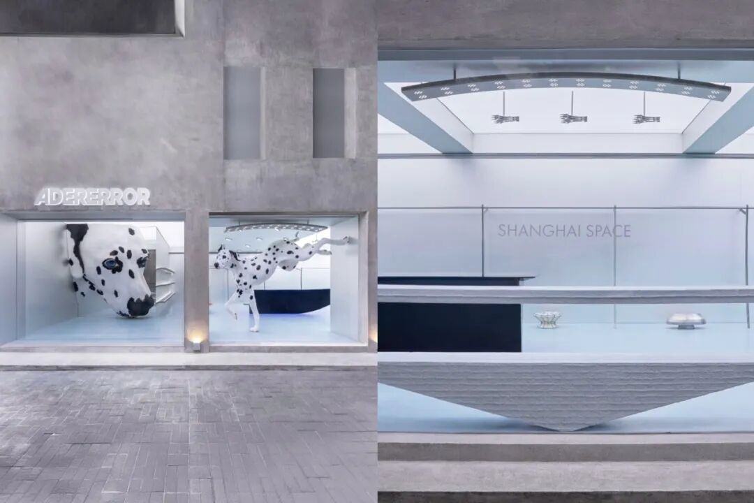 注重树立高端品牌形象,同样体现在店铺空间打造上。不同于chuu在门店内设置logo彩灯、打卡墙的营销方式,这波韩流品牌更注重品牌文化输出。比如,AderError中国首店为艺术策展空间,门店一层的巨型大麦町犬艺术装置,是品牌想象中的达尔马提亚形象化身,作为连接消费者与品牌的象征媒介。
