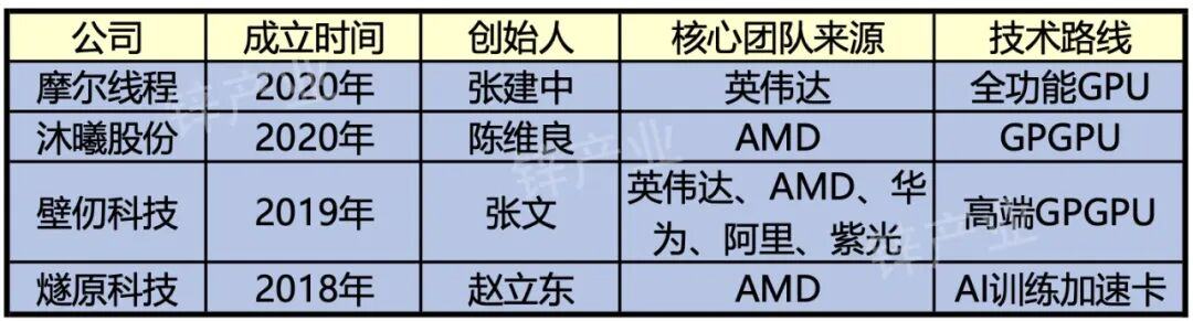 国产GPU四小龙的创始人背景有所不同,使得四个团队选择的技术路径也略有差异。