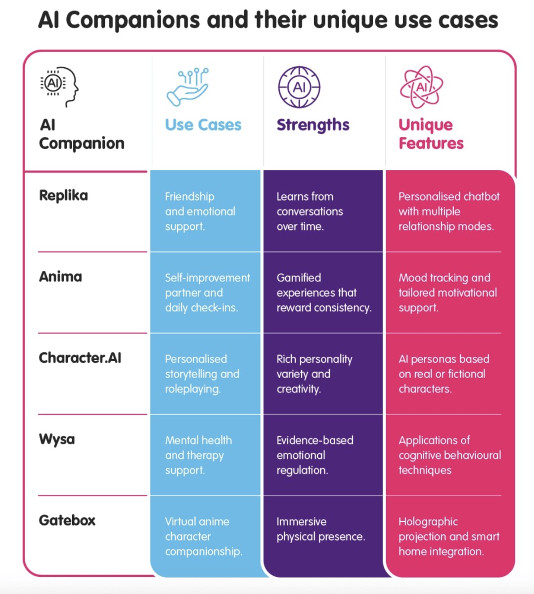 AI陪伴技术正以多元形态融入生活场景。虚拟软件形态的AI伴侣,如Replika或Character.AI,依托大语言模型的情感化调校,在对话中构建可定制的人格与记忆,成为用户倾诉与互动的数字知己;实体硬件形态的陪伴机器人,例如具备主动关怀功能的ElliQ或主打情感交互的Ropet,则通过多模态感知与具身交互,在家庭环境中提供有温度、可触碰的日常陪伴;而在更广阔的生活系统中,AI陪伴也正以智能体形式嵌入操作系统,成为集成健康管理、日程提醒与情绪支持的无形助手。