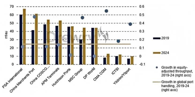 图:过去5年全球港口装卸量增速,来源:Drewry