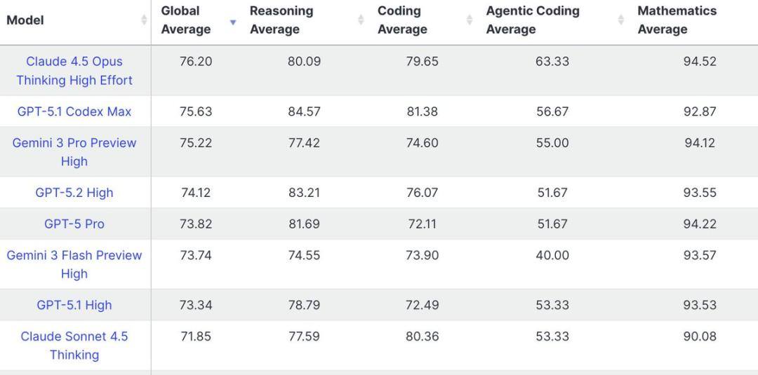 最新版LiveBench(圣诞&新年假期期间,官方更新了LiveBench基准测试以防作弊)上,Claude 4.5 Opus登上了榜首。
