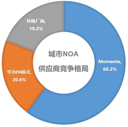 报告数据显示,2025年1-10月,在城市NOA第三方智驾市场中,Momenta以约60.2%的份额稳居榜首,连续三年稳定增长并保持60%以上份额,持续领跑市场。华为HI模式则以约20.6%的份额紧随其后,双雄格局牢固且持续深化,形成“算法-数据闭环-规模化量产”的闭环优势。