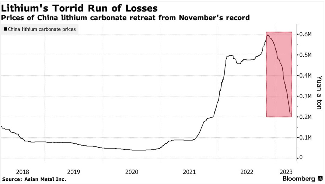 2023年锂价剧烈下跌