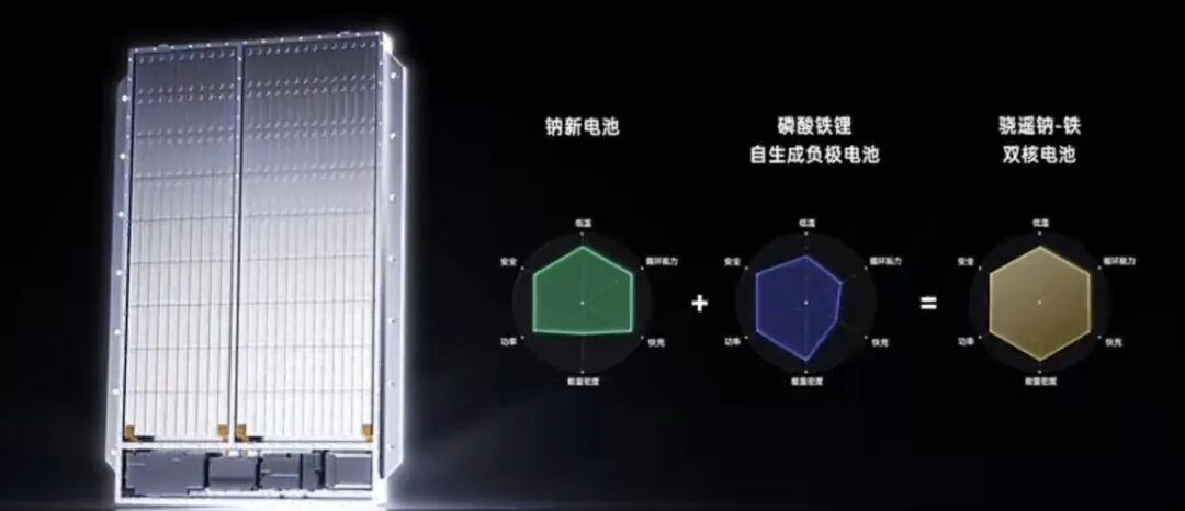 去年,钠新电池发布骁遥双核电池,基于钠和锂的双拼可以实现700km纯电续航。